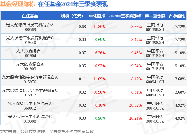 证券之星消息,日前光大保德信中小盘混合A基金公布三季报,2024年三季度最新规模0.92亿元,季度净值涨幅为20.32%。