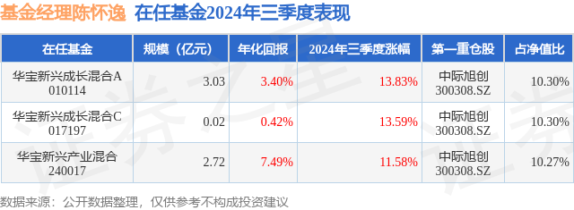 证券之星消息,日前华宝新兴产业混合基金公布三季报,2024年三季度最新规模2.72亿元,季度净值涨幅为11.58%。