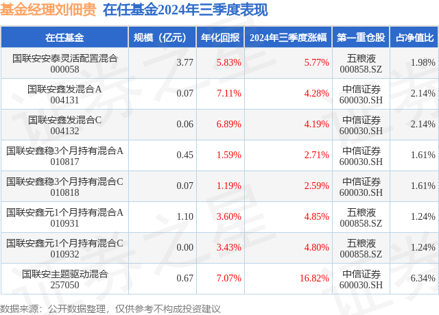 从基金规模来看,国联安主题驱动混合基金2024年三季度公布的基金规模为0.67亿元,较上一期规模5837.64万元变化了889.58万元,环比变化了15.24%。该基金最新一期资产配置为:股票占净值比92.36%,无债券类资产,现金占净值比6.31%。从基金持仓来看,该基金当季前十大股票仓位达33.01%,第一大重仓股为中信证券(600030),持仓占比为6.34%。