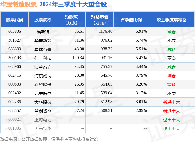 证券之星消息,日前华宝制造股票基金公布三季报,2024年三季度最新规模1.7亿元,季度净值涨幅为13.88%。