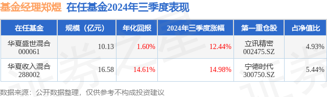 证券之星消息,日前华夏收入混合基金公布三季报,2024年三季度最新规模16.58亿元,季度净值涨幅为14.98%。