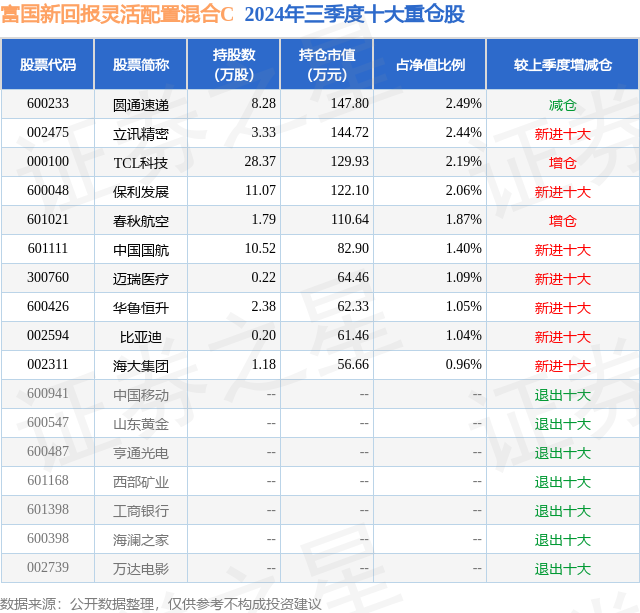 证券之星消息,日前富国新回报灵活配置混合C基金公布三季报,2024年三季度最新规模0.02亿元,季度净值涨幅为2.54%。