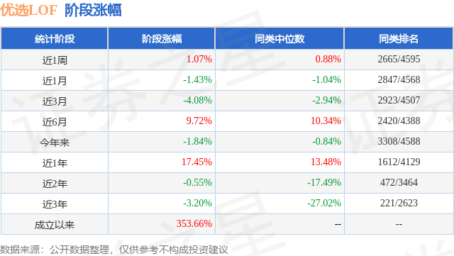 从业绩表现来看,优选LOF基金过去一年净值涨幅为15.54%,在同类基金中排名534/3979,同类基金过去一年净值涨幅中位数为5.4%。而基金过去一年的最大回撤为-13.37%,成立以来的最大回撤为-40.88%。