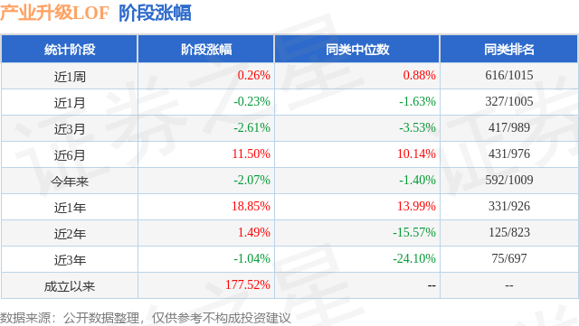 从业绩表现来看,产业升级LOF基金过去一年净值涨幅为14.73%,在同类基金中排名200/897,同类基金过去一年净值涨幅中位数为6.57%。而基金过去一年的最大回撤为-13.29%,成立以来的最大回撤为-60.18%。
