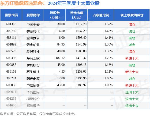 证券之星消息,日前东方红稳健精选混合C基金公布三季报,2024年三季度最新规模4.69亿元,季度净值涨幅为4.26%。