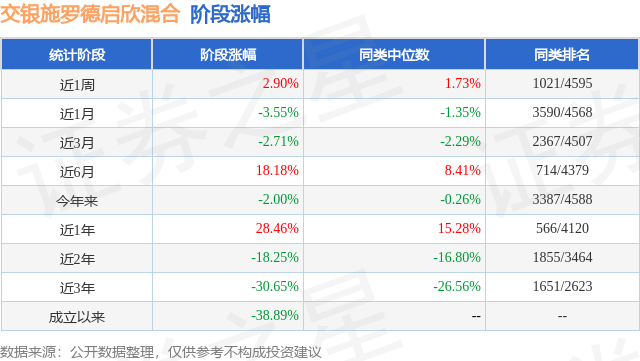 从业绩表现来看,交银施罗德启欣混合基金过去一年净值涨幅为12.86%,在同类基金中排名804/3979,同类基金过去一年净值涨幅中位数为5.4%。而基金过去一年的最大回撤为-23.18%,成立以来的最大回撤为-58.97%。