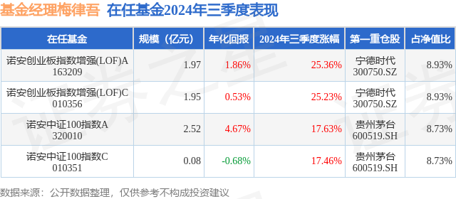 诺安中证100指数C现任基金经理为梅律吾。其中在任基金经理梅律吾已从业16年又264天,2020年10月28日正式接手管理诺安中证100指数C,任职期间累计回报为-2.69%。目前还管理着4只基金产品(包括A类和C类),其中本季度表现最佳的基金为诺安创业板指数增强(LOF)A(163209),季度净值涨幅为25.36%。
