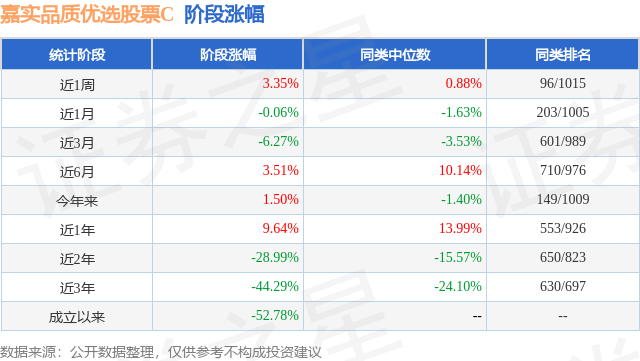 从业绩表现来看,嘉实品质优选股票C基金过去一年净值涨幅为0.52%,在同类基金中排名632/897,同类基金过去一年净值涨幅中位数为6.57%。而基金过去一年的最大回撤为-18.94%,成立以来的最大回撤为-58.0%。