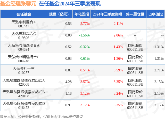 天弘多利一年现任基金经理为张馨元。其中在任基金经理张馨元已从业1年又133天,2024年2月23日正式接手管理天弘多利一年,任职期间累计回报为5.41%。目前还管理着8只基金产品(包括A类和C类),其中本季度表现最佳的基金为天弘多利一年(010257),季度净值涨幅为3.59%。