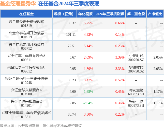证券之星消息,日前兴全汇享一年持有混合C基金公布三季报,2024年三季度最新规模0.95亿元,季度净值涨幅为3.33%。