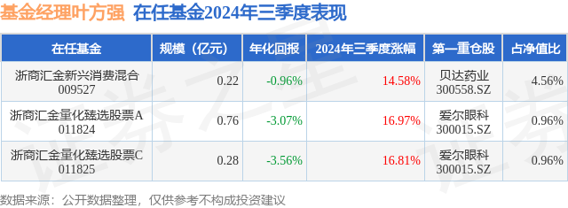 证券之星消息,日前浙商汇金新兴消费混合基金公布三季报,2024年三季度最新规模0.22亿元,季度净值涨幅为14.58%。