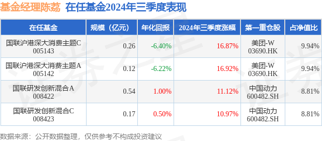 国联沪港深大消费主题C现任基金经理为陈荔。其中在任基金经理陈荔已从业4年又63天,2020年9月1日正式接手管理国联沪港深大消费主题C,任职期间累计回报为-40.18%。目前还管理着4只基金产品(包括A类和C类),其中本季度表现最佳的基金为国联沪港深大消费主题A(005142),季度净值涨幅为16.92%。