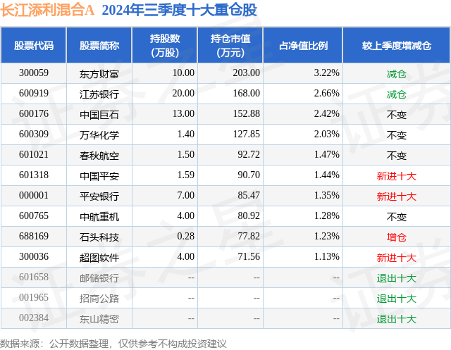 证券之星消息,日前长江添利混合A基金公布三季报,2024年三季度最新规模0.23亿元,季度净值涨幅为6.23%。