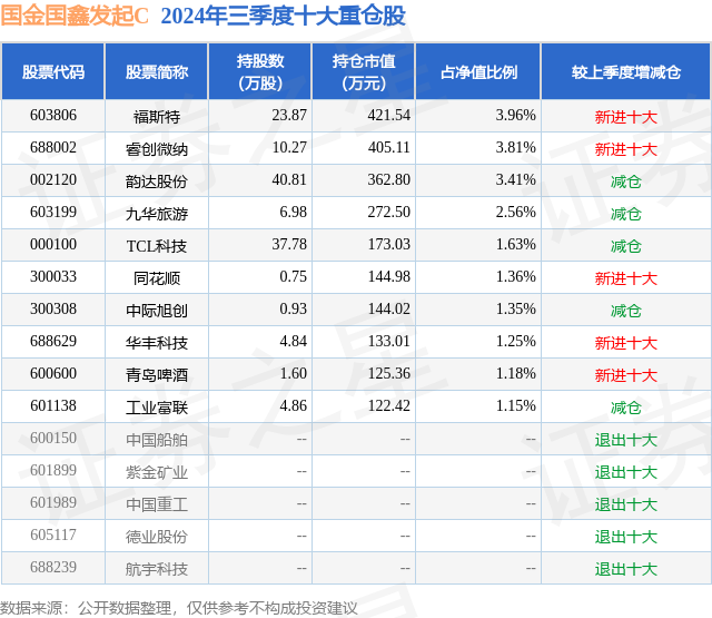 证券之星消息,日前国金国鑫发起C基金公布三季报,2024年三季度最新规模0.19亿元,季度净值涨幅为13.58%。
