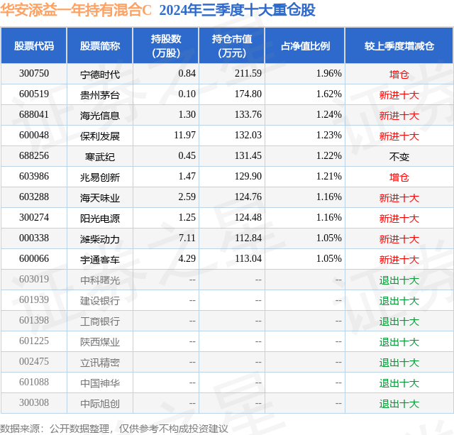 证券之星消息,日前华安添益一年持有混合C基金公布三季报,2024年三季度最新规模0.18亿元,季度净值涨幅为4.19%。