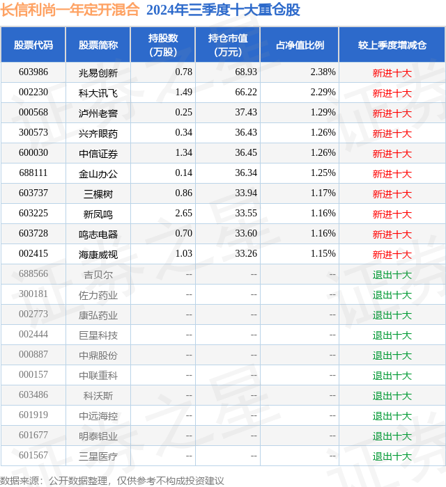 证券之星消息,日前长信利尚一年定开混合基金公布三季报,2024年三季度最新规模0.29亿元,季度净值涨幅为8.06%。