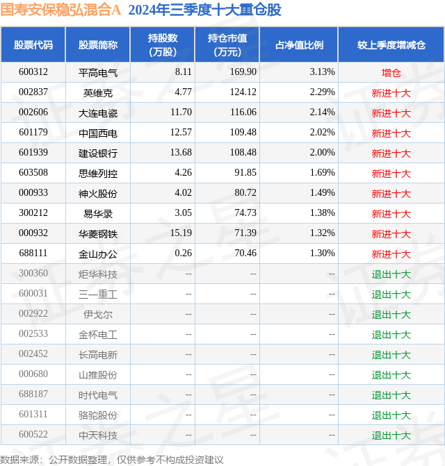 证券之星消息,日前国寿安保稳弘混合A基金公布三季报,2024年三季度最新规模0.32亿元,季度净值涨幅为3.0%。