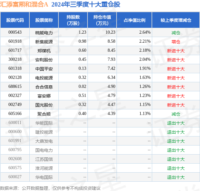 证券之星消息,日前汇添富熙和混合A基金公布三季报,2024年三季度最新规模0.02亿元,季度净值涨幅为-0.35%。