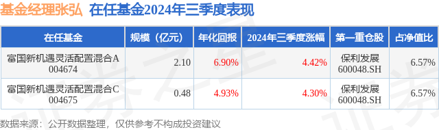 证券之星消息,日前富国新机遇灵活配置混合C基金公布三季报,2024年三季度最新规模0.48亿元,季度净值涨幅为4.3%。