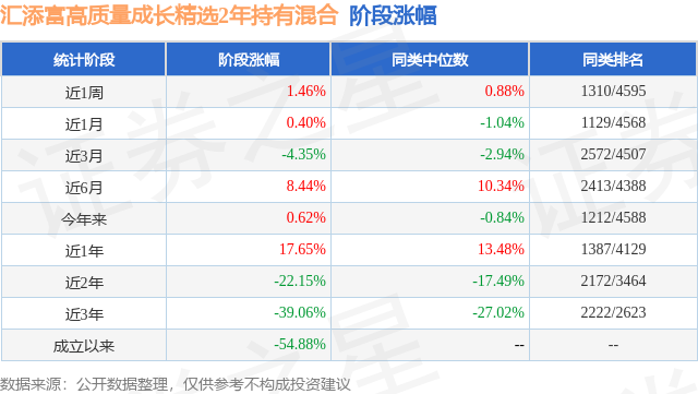 从业绩表现来看,汇添富高质量成长精选2年持有混合基金过去一年净值涨幅为5.1%,在同类基金中排名1882/3979,同类基金过去一年净值涨幅中位数为5.4%。而基金过去一年的最大回撤为-20.6%,成立以来的最大回撤为-67.57%。