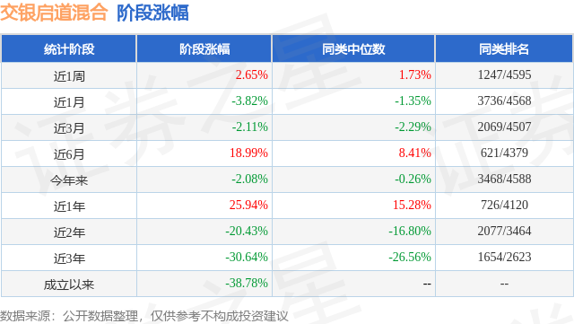 从业绩表现来看,交银启道混合基金过去一年净值涨幅为10.47%,在同类基金中排名1129/3979,同类基金过去一年净值涨幅中位数为5.4%。而基金过去一年的最大回撤为-23.66%,成立以来的最大回撤为-54.35%。