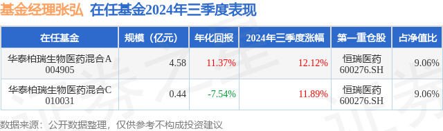 证券之星消息,日前华泰柏瑞生物医药混合A基金公布三季报,2024年三季度最新规模4.58亿元,季度净值涨幅为12.12%。