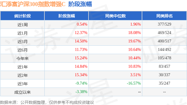 证券之星消息,日前汇添富沪深300指数增强C基金公布三季报,2024年三季度最新规模16.12亿元,季度净值涨幅为14.83%。
