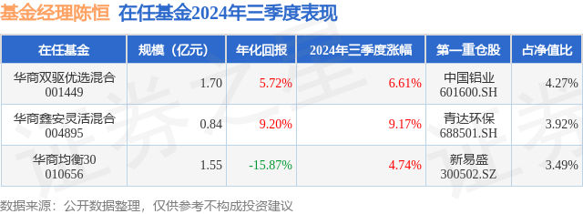 证券之星消息,日前华商均衡30基金公布三季报,2024年三季度最新规模1.55亿元,季度净值涨幅为4.74%。