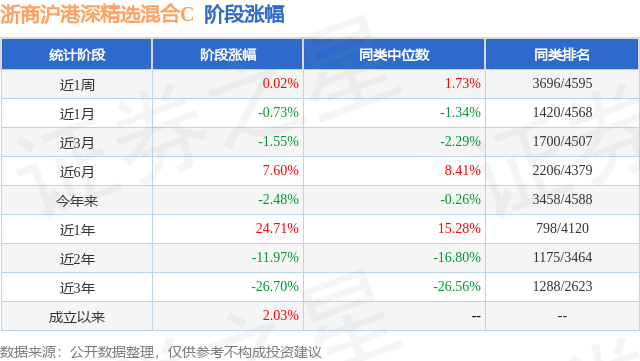 从业绩表现来看,浙商沪港深精选混合C基金过去一年净值涨幅为13.21%,在同类基金中排名769/3979,同类基金过去一年净值涨幅中位数为5.4%。而基金过去一年的最大回撤为-20.6%,成立以来的最大回撤为-59.86%。