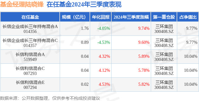 证券之星消息,日前长信利信混合E基金公布三季报,2024年三季度最新规模0.02亿元,季度净值涨幅为5.82%。