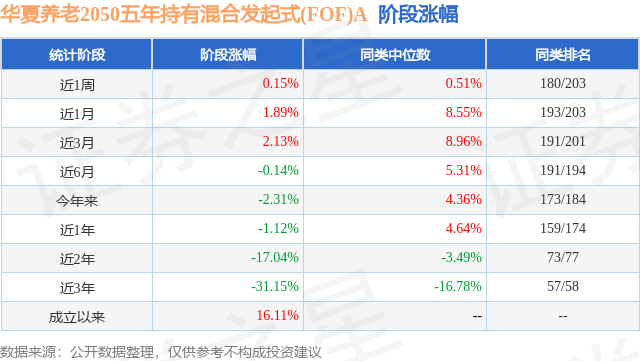 从业绩表现来看,华夏养老2050五年持有混合发起式(FOF)A基金过去一年净值涨幅为-1.12%,在同类基金中排名159/174,同类基金过去一年净值涨幅中位数为4.64%。而基金过去一年的最大回撤为-8.95%,成立以来的最大回撤为-36.22%。
