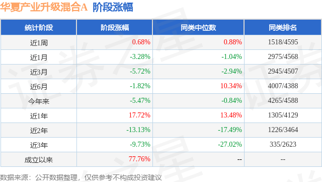 从业绩表现来看,华夏产业升级混合A基金过去一年净值涨幅为6.51%,在同类基金中排名1679/3979,同类基金过去一年净值涨幅中位数为5.4%。而基金过去一年的最大回撤为-21.15%,成立以来的最大回撤为-43.15%。