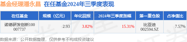 证券之星消息,日前诺德研发创新100基金公布三季报,2024年三季度最新规模2.93亿元,季度净值涨幅为15.31%。