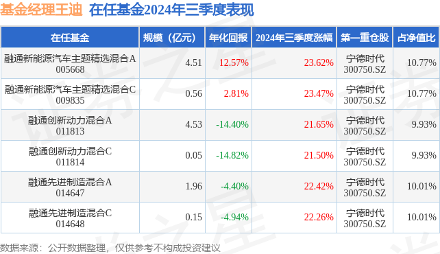 证券之星消息,日前融通新能源汽车主题精选混合A基金公布三季报,2024年三季度最新规模4.51亿元,季度净值涨幅为23.62%。