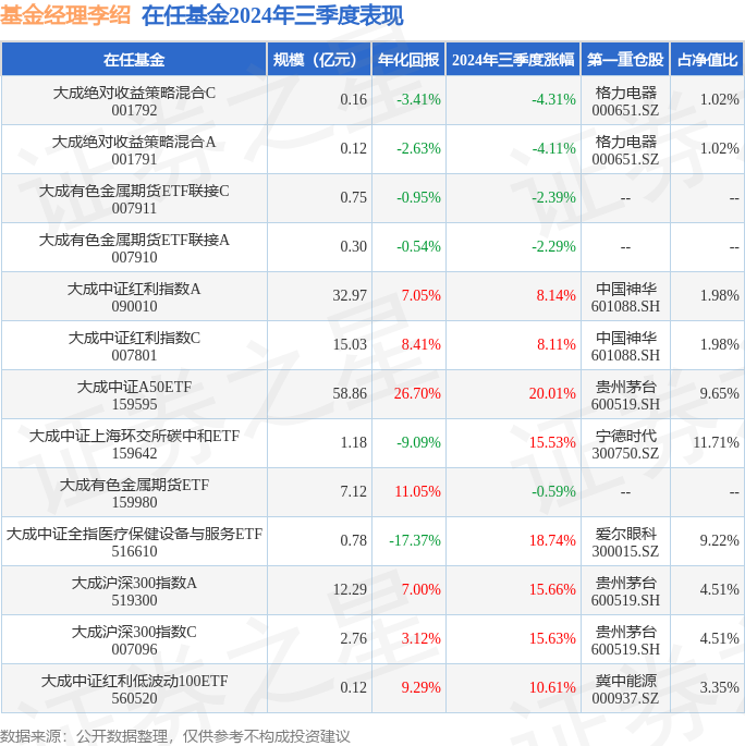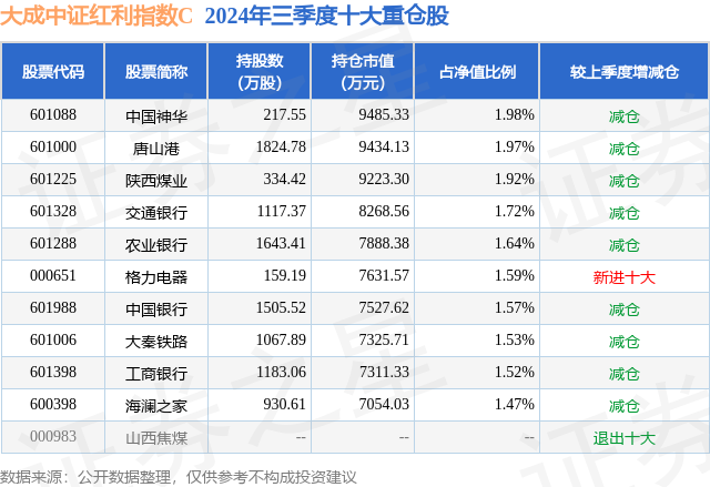 证券之星消息,日前大成中证红利指数C基金公布三季报,2024年三季度最新规模15.03亿元,季度净值涨幅为8.11%。