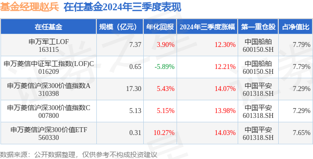 申万菱信沪深300价值指数C现任基金经理为赵兵。其中在任基金经理赵兵已从业2年又227天,2022年3月15日正式接手管理申万菱信沪深300价值指数C,任职期间累计回报为21.18%。目前还管理着5只基金产品(包括A类和C类),其中本季度表现最佳的基金为申万菱信沪深300价值指数A(310398),季度净值涨幅为14.07%。