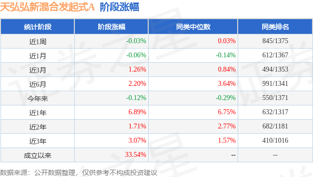 从业绩表现来看,天弘弘新混合发起式A基金过去一年净值涨幅为2.66%,在同类基金中排名959/1322,同类基金过去一年净值涨幅中位数为4.43%。而基金过去一年的最大回撤为-5.62%,成立以来的最大回撤为-7.11%。