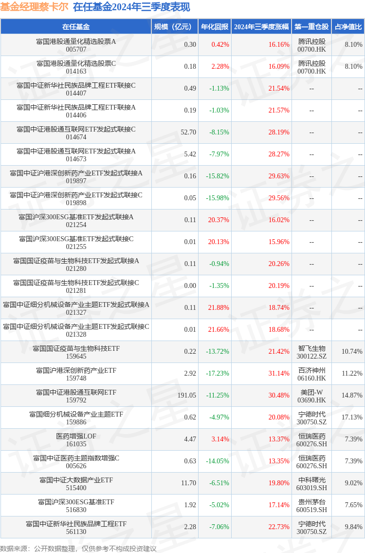 富国港股通量化精选股票A现任基金经理为蔡卡尔,近期离任的基金经理为徐幼华。其中在任基金经理蔡卡尔已从业7年又296天,2018年5月30日正式接手管理富国港股通量化精选股票A,任职期间累计回报为2.73%。目前还管理着23只基金产品(包括A类和C类),其中本季度表现最佳的基金为富国沪港深创新药产业ETF(159748),季度净值涨幅为31.14%。