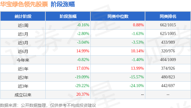 从业绩表现来看,华宝绿色领先股票基金过去一年净值涨幅为11.94%,在同类基金中排名340/897,同类基金过去一年净值涨幅中位数为6.57%。而基金过去一年的最大回撤为-24.98%,成立以来的最大回撤为-54.25%。