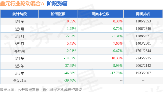从业绩表现来看,鑫元行业轮动混合A基金过去一年净值涨幅为-25.17%,在同类基金中排名2250/2261,同类基金过去一年净值涨幅中位数为5.1%。而基金过去一年的最大回撤为-37.21%,成立以来的最大回撤为-53.48%。