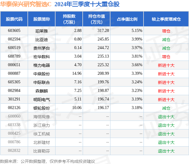 证券之星消息,日前华泰保兴研究智选C基金公布三季报,2024年三季度最新规模0.01亿元,季度净值涨幅为10.13%。