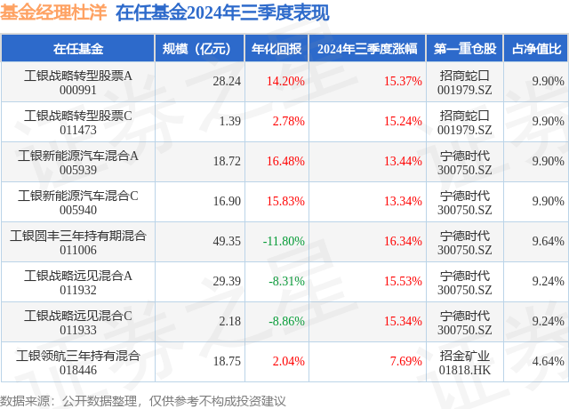 证券之星消息,日前工银新能源汽车混合A基金公布三季报,2024年三季度最新规模18.72亿元,季度净值涨幅为13.44%。