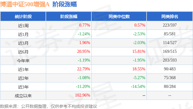从业绩表现来看,博道中证500增强A基金过去一年净值涨幅为10.17%,在同类基金中排名252/457,同类基金过去一年净值涨幅中位数为10.83%。而基金过去一年的最大回撤为-21.4%,成立以来的最大回撤为-44.45%。