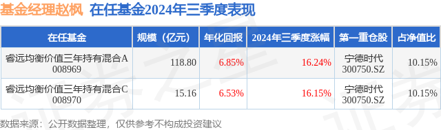 证券之星消息,日前睿远均衡价值三年持有混合C基金公布三季报,2024年三季度最新规模15.16亿元,季度净值涨幅为16.15%。