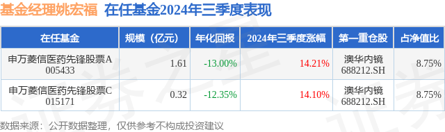 证券之星消息,日前申万菱信医药先锋股票A基金公布三季报,2024年三季度最新规模1.61亿元,季度净值涨幅为14.21%。