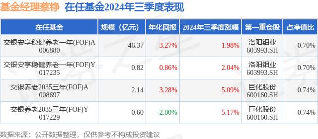 证券之星消息,日前交银养老2035三年(FOF)A基金公布三季报,2024年三季度最新规模2.14亿元,季度净值涨幅为5.09%。