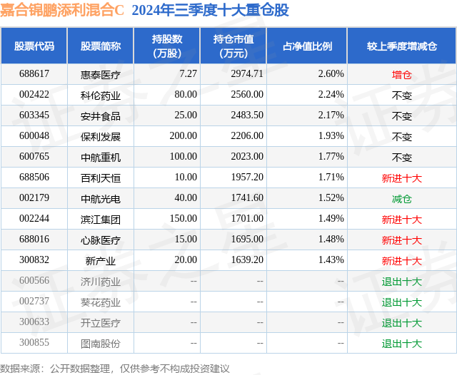 证券之星消息,日前嘉合锦鹏添利混合C基金公布三季报,2024年三季度最新规模6.7亿元,季度净值涨幅为3.31%。
