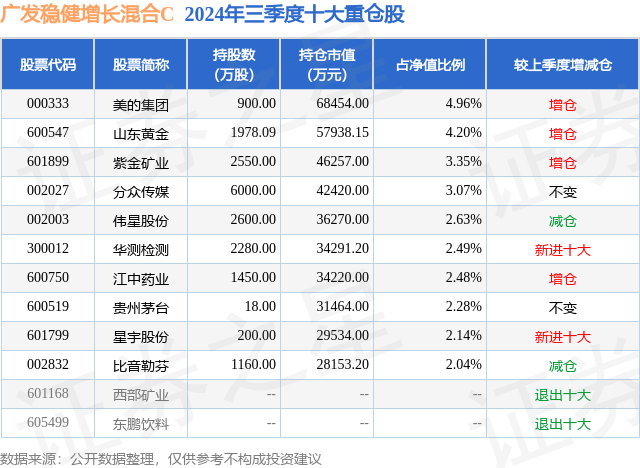 证券之星消息,日前广发稳健增长混合C基金公布三季报,2024年三季度最新规模1.75亿元,季度净值涨幅为5.23%。