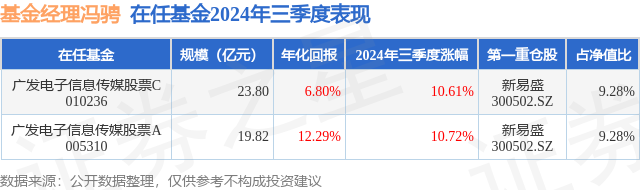 证券之星消息,日前广发电子信息传媒股票A基金公布三季报,2024年三季度最新规模19.82亿元,季度净值涨幅为10.72%。