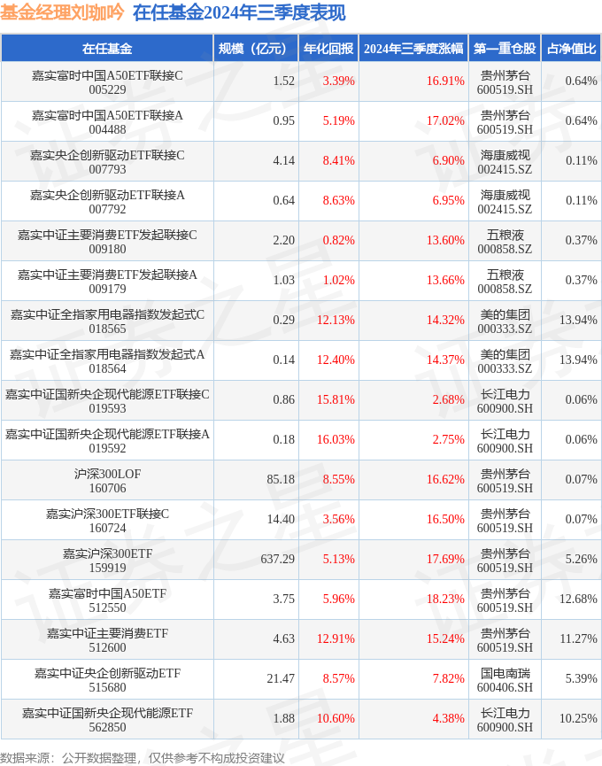 证券之星消息,日前嘉实中证主要消费ETF发起联接C基金公布三季报,2024年三季度最新规模2.2亿元,季度净值涨幅为13.6%。